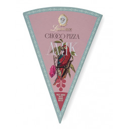 Mléčná čokoláda ve tvaru pizzy s čokoládovými kuličkami.