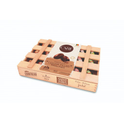 Dárková dřevěná bedýnka s kolekcí lahviček z hořké čokolády,...