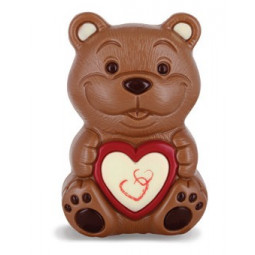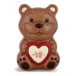 Medvídek z mléčné čokolády s různými dekory z cukrářské hmoty...