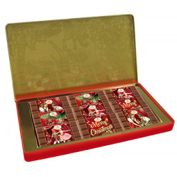 Mléčná čokoláda v atraktivní vánoční plechové kazetě.