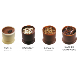 Plněné čokoládové pohárky - Mokka, Lískový ořech, Karamel.
