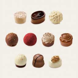 Výběrová kolekce marcipánu - mléčná, hořká, hořká s pomerančem.