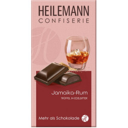 Hořká čokoláda 62% s krémovou náplní Jamajka – rum (33%).