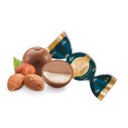 0Jemná mléčná čokoláda s mandlovo – smetanovým nugátem (33%).