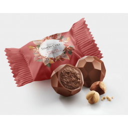 Sladkost mléčné čokolády oživují lískové oříšky. Křupavá...
