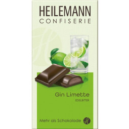 Hořká čokoláda plněná jemným krémem (33%) s Ginem a limetkou.