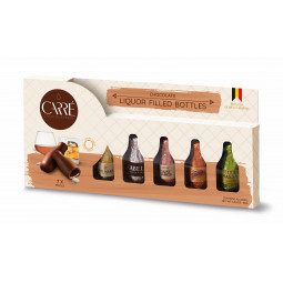 Dárková dřevěná bedýnka s kolekcí lahviček z hořké čokolády,...
