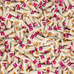 Samostatně balené porce lísko ořechového nugátu s kávou.