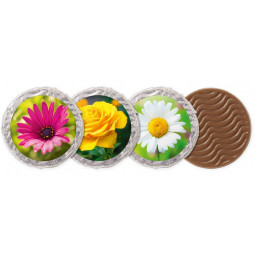 48 ks "Dublonů" z mléčné čokolády s motivy květin á 8 g