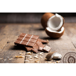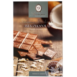 Ručně vyrobená mléčná čokoláda s kokosovými vločkami.