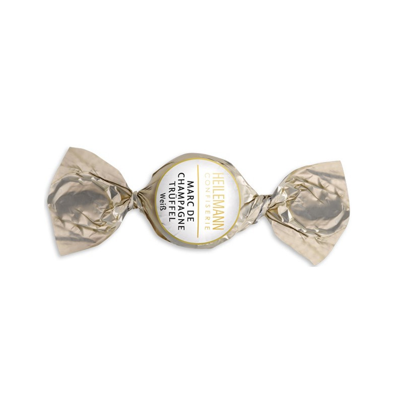 3 x Bílá čokoláda s lanýžovou náplní Marc de Champagne (45 %).