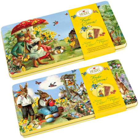 Jemná mléčná čokoláda (minimální podíl kakaové sušiny 37 %) v dárkové kovové kazetě s vánočním motivem (2 varianty).
