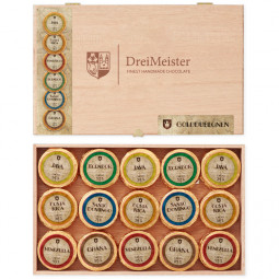 Dřevěná kazeta s degustační sadou 45 plantážních čokolád....