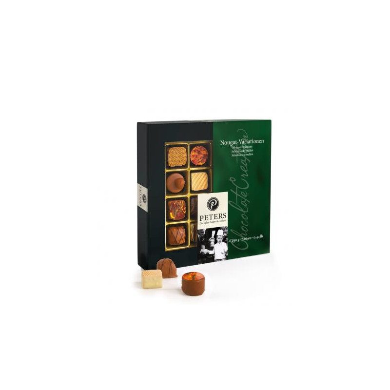 Složení: cukr, kakaové máslo, jádra lískových ořechů 16 %, sušené plnotučné mléko, mandle, kakaová hmota, pšeničná mouka, emulgátor: lecitin (slunečnicový, sójový), sušená smetana v prášku, přírodní vanilkové aroma, odstředěné mléko v prášku, čistý máselný tuk, karamelový sirup, lusk vanilky Bourbon, sůl, kakaový prášek, barvící potravina (spirulinový extrakt), barvivo (Kurkumin, Karmín, Antokyany).
