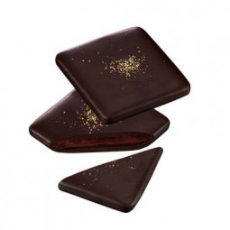 Jemná plněná hořká čokoláda dekorovaná zlatým prachem.