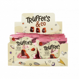 Kakaové lanýže s kousky malinových makronek 35g. V prodeji...