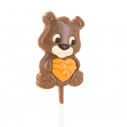 Medvídek z mléčné čokolády s různými dekory z cukrářské hmoty...