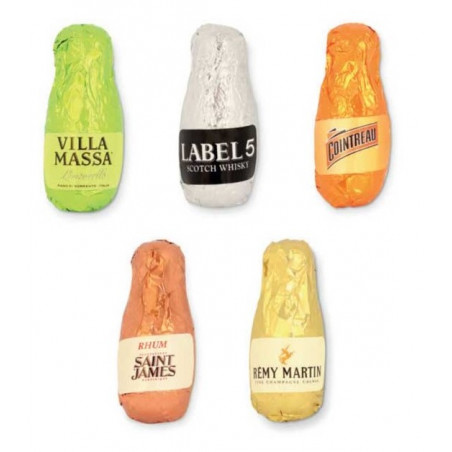 Složení: cukr, hořká čokoláda (27,4 %) (kakaová hmota, cukr, kakaové máslo, emulgátor (SÓJOVÝ lecitin) vanilkový extrakt), voda, lihoviny (4,4 %) (Limoncello, rum Saint James, brandy Rémy Martin XO, Cointreau, Scotch Whisky Label 5). Může obsahovat stopy MLÉKA. Minimální podíl kakaové sušiny v čokoládě: 60 %. Obsahuje alkohol. Nutriční hodnoty ve 100 g: energetická hodnota 1558 kJ / 370 kcal; tuky 11g (z toho nasycené mastné kyseliny 6,5g); sacharidy 65g (z toho cukr 64g); bílkoviny 1,7g, sůl <0,1g. Uchovejte v suchu a chladu. Vyrobeno v Belgii. Dovozce: Chocotherapia s.r.o., Loosova 1, 638 00 Brno. Obsah. 160 ks á 12,5 g. Hmotnost: 2 kg. Minimální trvanlivost do: viz obal.