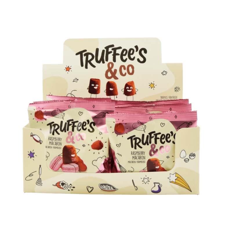Kakaové lanýže s kousky malinových makronek 35g.