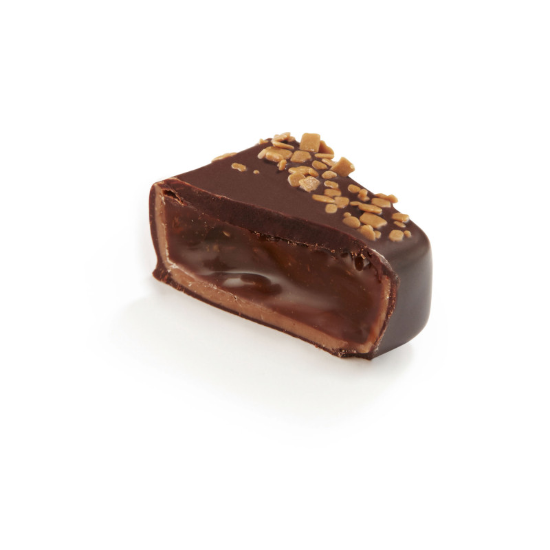 Balení pralinek z mléčné čokolády se slaným karamelem pro kusový prodej.