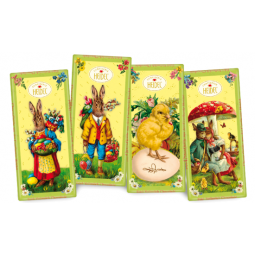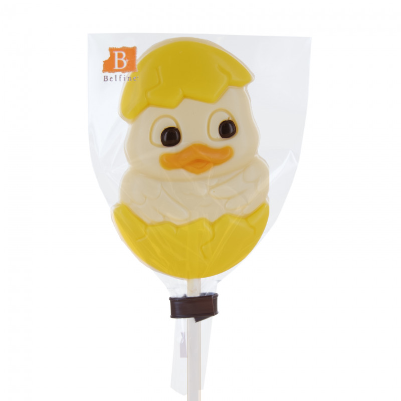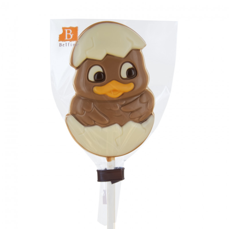 Kuřátko: Mléčná čokoláda s cukrářským zdobením.