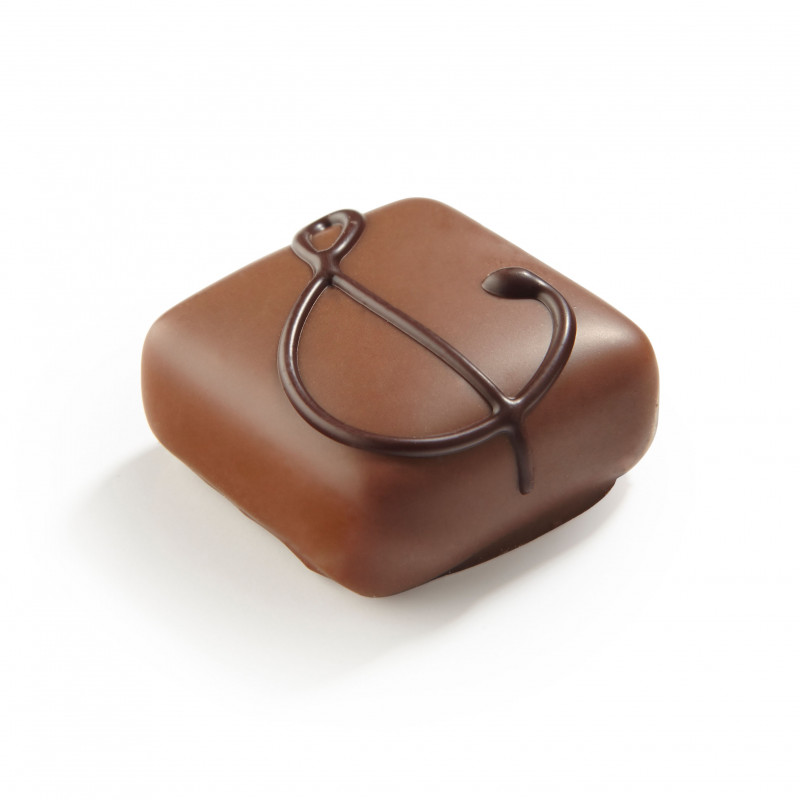 Hořká čokoláda 62% s náplní mátového fondánu (33%).