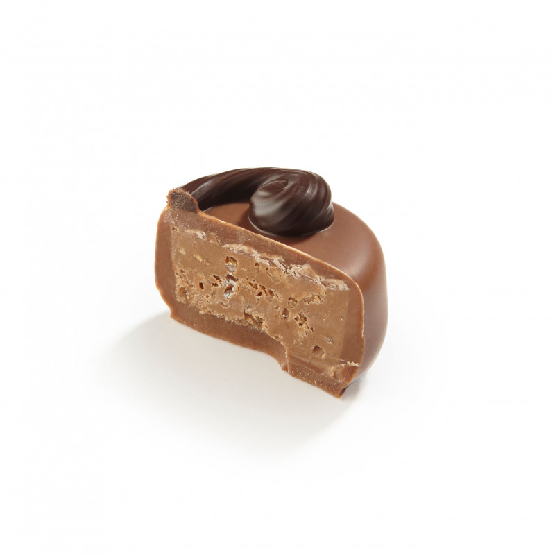 Složení: cukr, kakaové máslo, sušené plnotučné MLÉKO, LÍSKOVÉ OŘECHY 10,52 %, kakaová hmota, LAKTÓZA, emulgátor (SÓJOVÝ lecitin), přírodní vanilkové aroma, voda. Může obsahovat stopy: VEJCE, LEPEK.