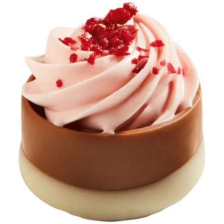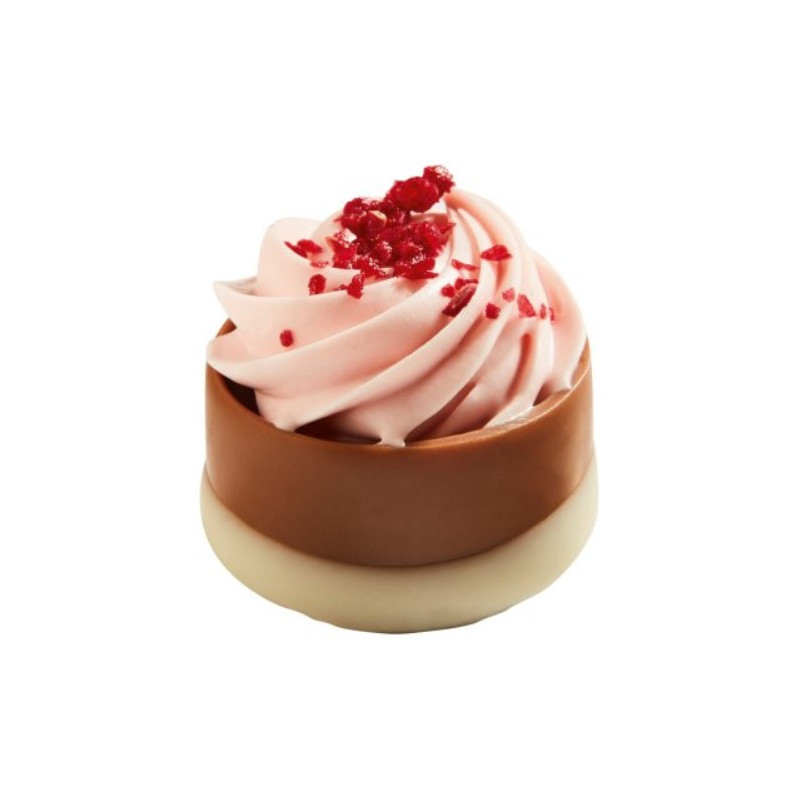 Cukr, kakaová hmota, sušené plnotučné MLÉKO v prášku, rostlinný tuk (palmový, řepkový, slunečnicový), glukózový sirup, sušené odstředěné MLÉKO v prášku, stabilizátor (glycerol, Pektin), invertní cukr, invertní cukerný sirup, LAKTÓZA, kakaová hmota, rostlinný olej (palmový, slunečnicový), SMETANA (MLÉKO), malinový destilát 50 % vol., malinový koncentrát 0,92 %, maliny 0,89 %, emulgátor (SÓJOVÝ lecitin, lecitin), voda, koncentrát (šťáva z červené řepy), přírodní aroma, přírodní vanilkové aroma, regulátor kyselosti (kyselina citrónová), sůl, aroma. Může obsahovat stopy: VEJCE, LEPEK, OŘECHY.