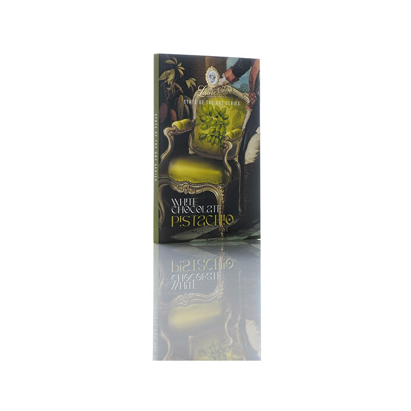 Bílá čokoláda s pistáciemi a jahodami.