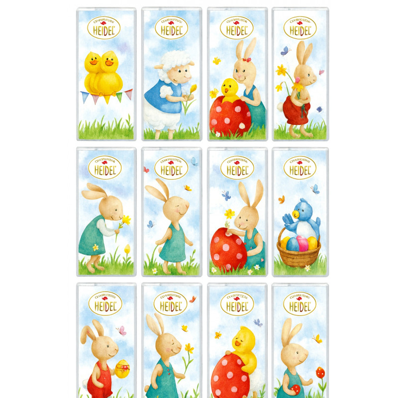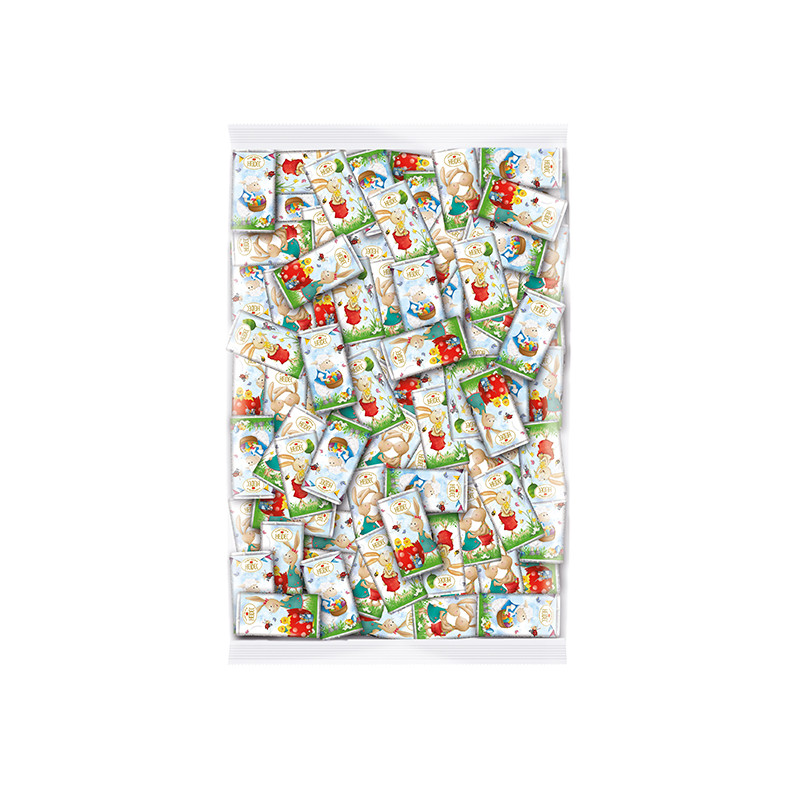Složení: cukr, kakaové máslo, sušené plnotučné mléko, kakaová hmota, emulgátor: sójový lecitin. Může obsahovat stopy skořápkových plodů. Skladujte v suchu, chraňte před teplem. Průměrné výživové hodnoty ve 100 g: energetická hodnota 2.428 kJ / 578 kcal, tuky 39g (nasycené mastné kyseliny 24g), sacharidy 50g (z toho cukr 49g), bílkoviny 6,2g, sůl 0,16g. Vyrobeno v Německu. Dovozce: Chocotherapia s.r.o., Loosova 1, 638 00. Brno. Hmotnost: 240 g. Obsah: cca 80 ks. Minimální trvanlivost do: viz.obal.