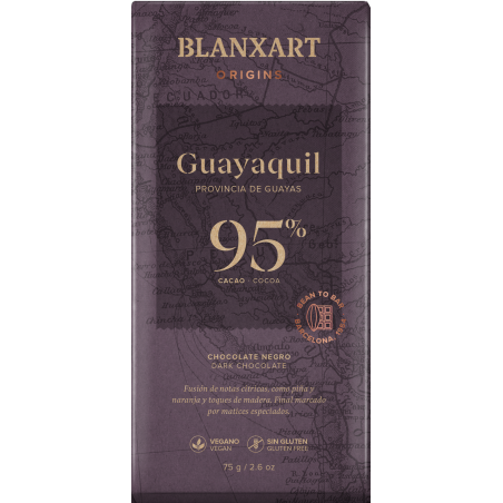 Odrůda kakaových bobů: Criollo. Oblast: Guayaqil, Guayas (Ekvádor). Vyvážená čokoláda ve všech jejích chuťových tónech. Tato vysokoprocentní čokoláda nabízí rostlinné a zemité tóny, které nakonec rozmělní nádherný pomerančový nádech.