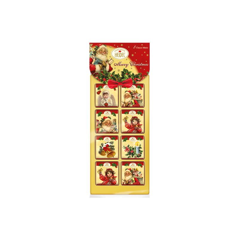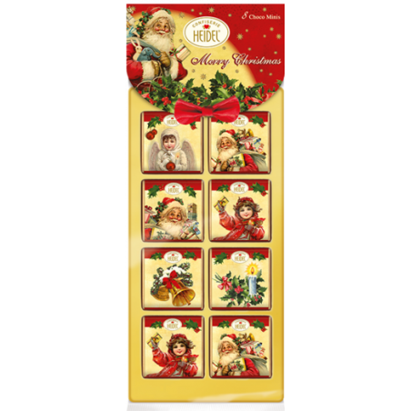 Dárková vánoční kolekce mini tabulkových mléčných čokolád s nostalgickými motivy.