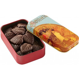 Hořká nebo mléčná čokoláda ve tvaru lístků v atraktivní kovové...