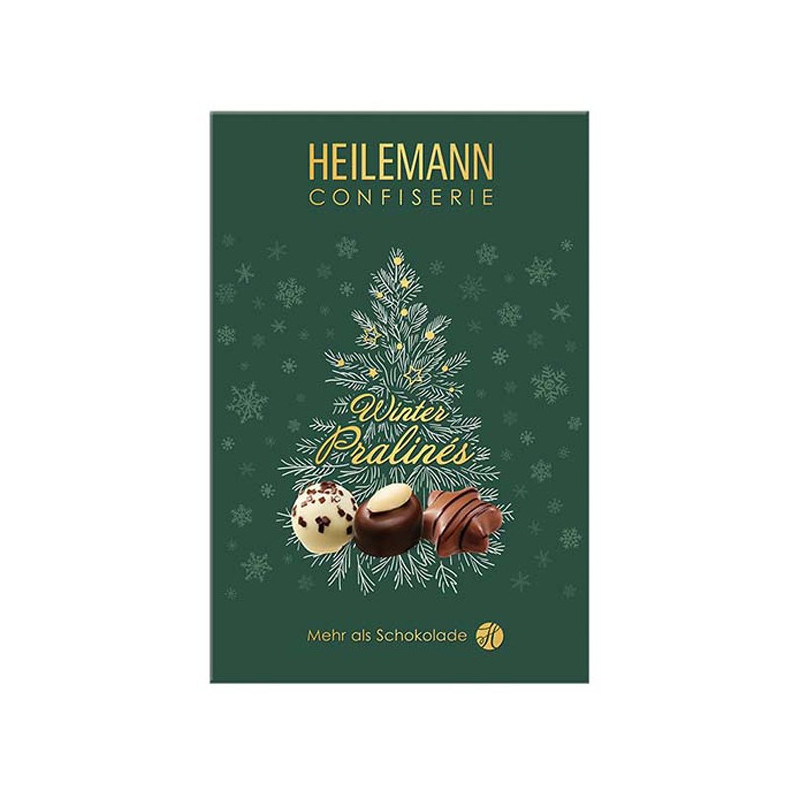 Kolekce jemných zimních pralinek. Minimální podíl kakaové sušiny v mléčné čokoládě: 32 %, 62 % v hořké čokoládě.