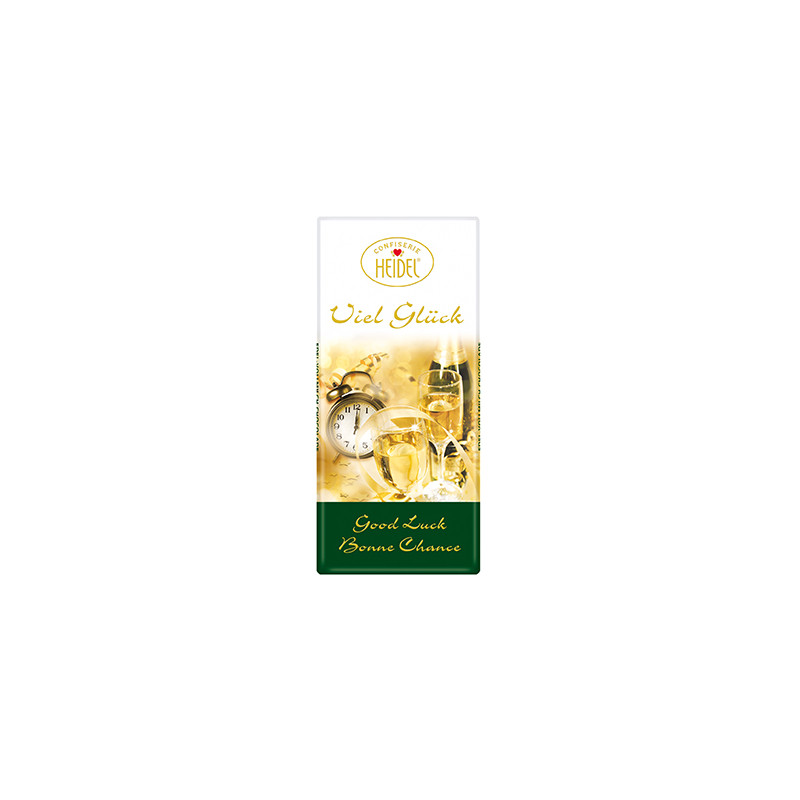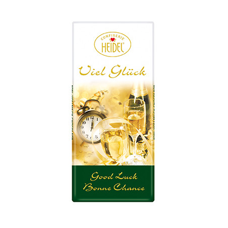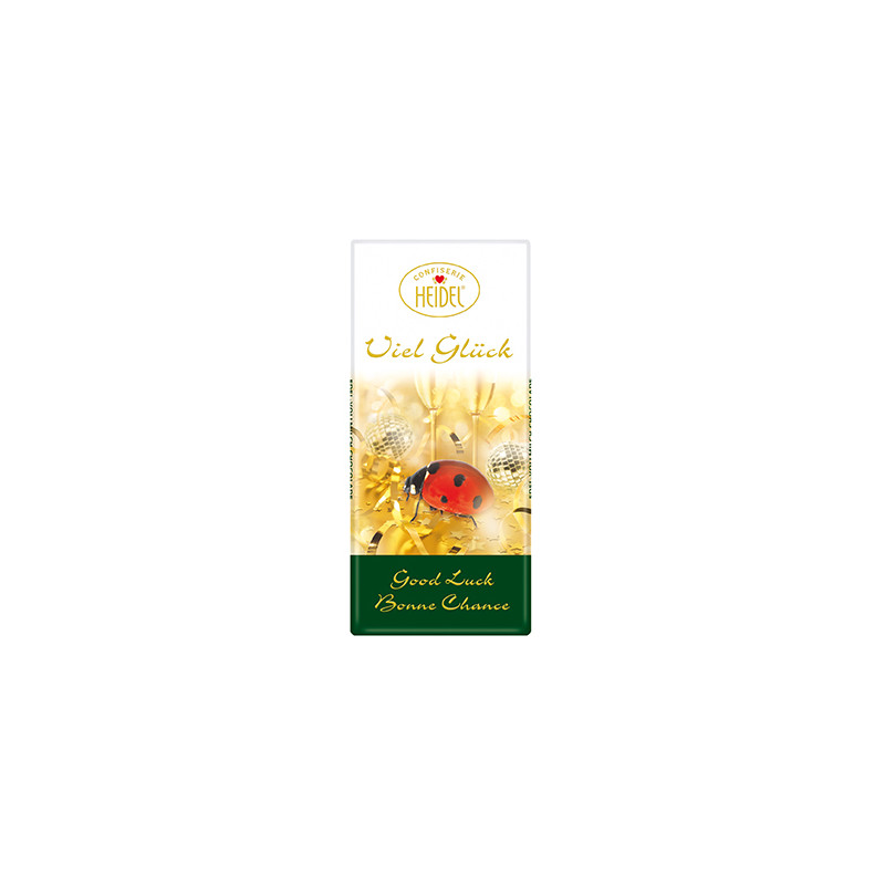 Jemná mléčná čokoláda (minimální podíl kakaové sušiny 37 %) s motivy symbolů štěstí (různé motivy).